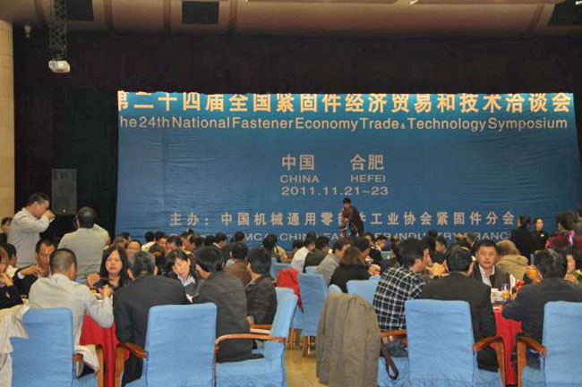 2011年11月21-23日,由中国机械通用零部件工业协会紧固件分会主办的第二十四届全国紧固件经济贸易和技术洽谈会在安徽合肥隆重举办!稻香楼宾馆外高高挂起的大红灯笼寓意祝福会议的顺利举办。“洽谈会”立足行业,举办多年以来深得业内外人士的拥护和欢迎。本届洽谈会会聚了五湖四海的行业朋友超过500人。
