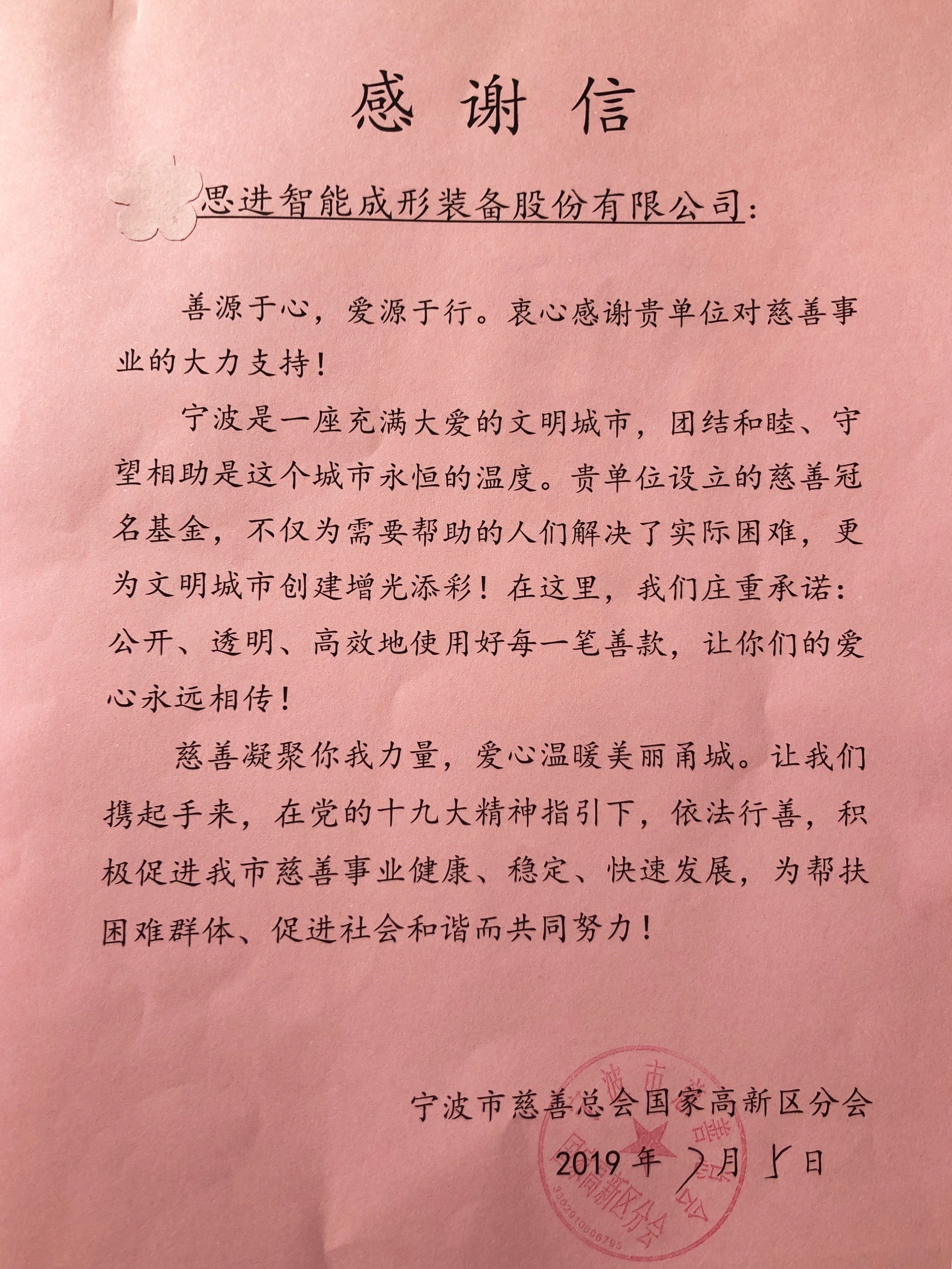 新半岛官网是一家致力于提升我国冷镦成形装备技术水平、推动冷镦成形工艺发展进步、实现紧固件及异形件产业升级的国家级高新技术企业,积极营造优质和谐的企业文化。半岛(中国)智能设立的100万元公益慈善基金,甘为播种机,把公益慈善的种子播撒在更多人的心田。不仅为有需要的人带去了慰问,更弘扬了企业的慈善文化。